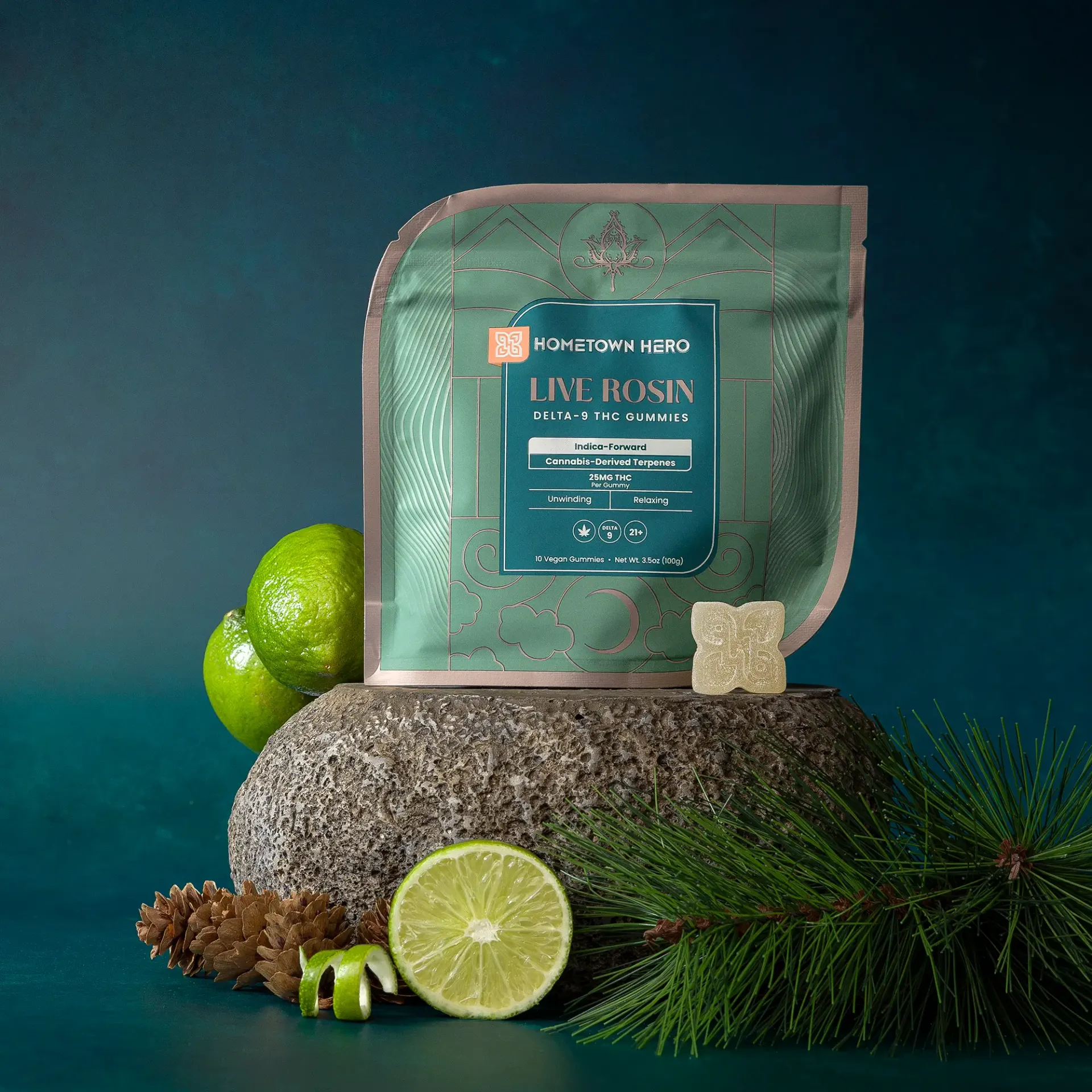 From craft and nature comes a live indica terpene profile with a fresh piney flavor highlighted by citrus. With 25mg of hemp-derived Delta-9, it’s time to enjoy the finer things in life.