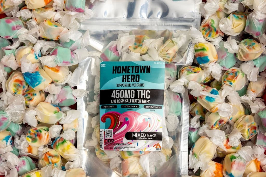The Delta-9 in these confections comes from hemp and is below 0.3% on a dry weight basis. So whether it’s the east coast, west coast, gulf coast, or no coast at all, these taffies are widely legal across the country.
