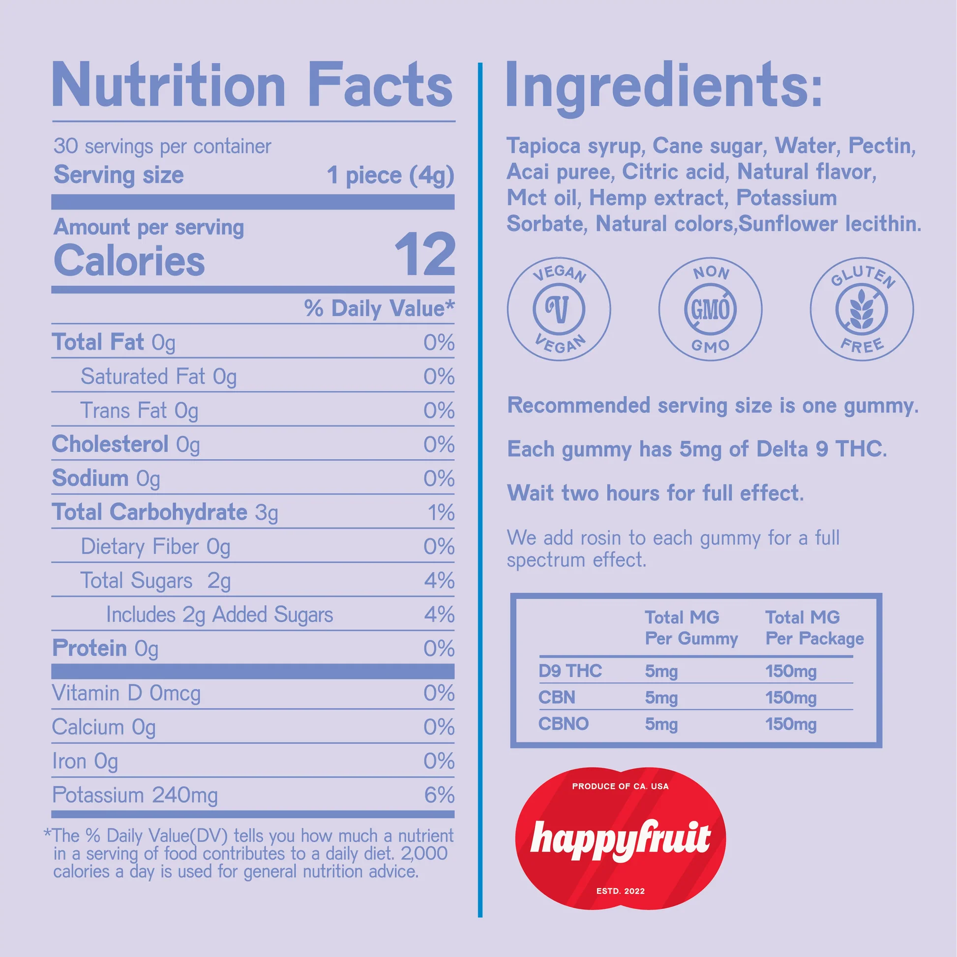 For nights when you need real recovery—not just a few hours of shut-eye. Made with antioxidant-rich elderberry fruit puree for a rich, calming finish. Contains full-spectrum rosin to support longer, deeper REM cycles. Subtle enough for mom to try, or stackable for your ideal experience. Vegan, clean, and free from artificial additives. 5MG THC PER GUMMY, 5MG CBN PER GUMMY, 5MG CBNO PER GUMMY. Naturally Sourced Sleep